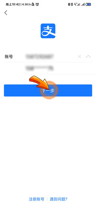 2、输入支付宝账号后,点击下方的“下一步”选项。