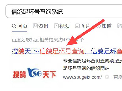1、 打开电脑浏览器,搜索并进入“信鸽足环号查询系统”。