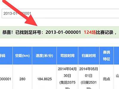 3、在页面中即可查询鸽子脚环号的有关记录。