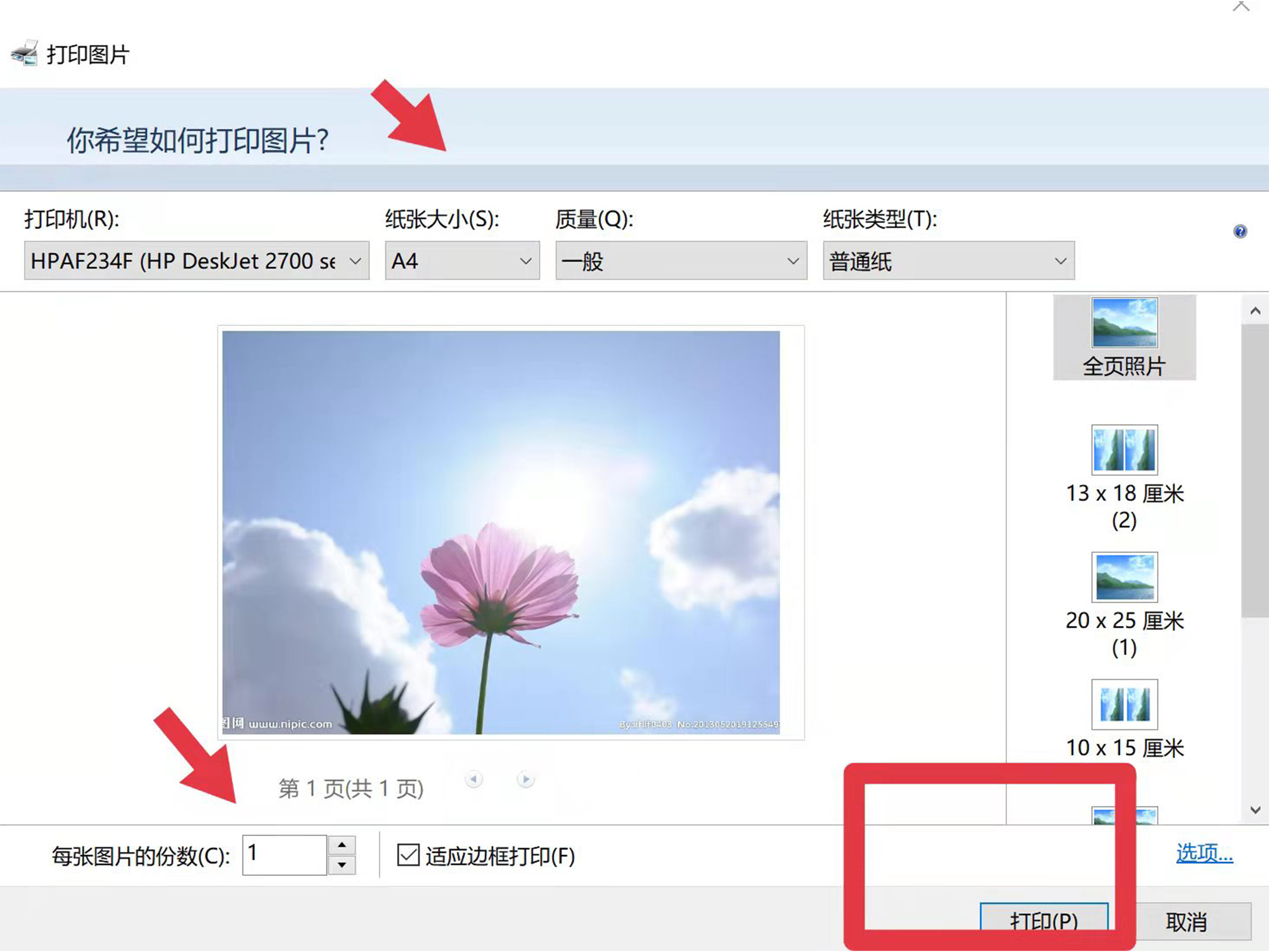 5、进行相应的打印设置后,点击“打印”,即可将图片打印出来。